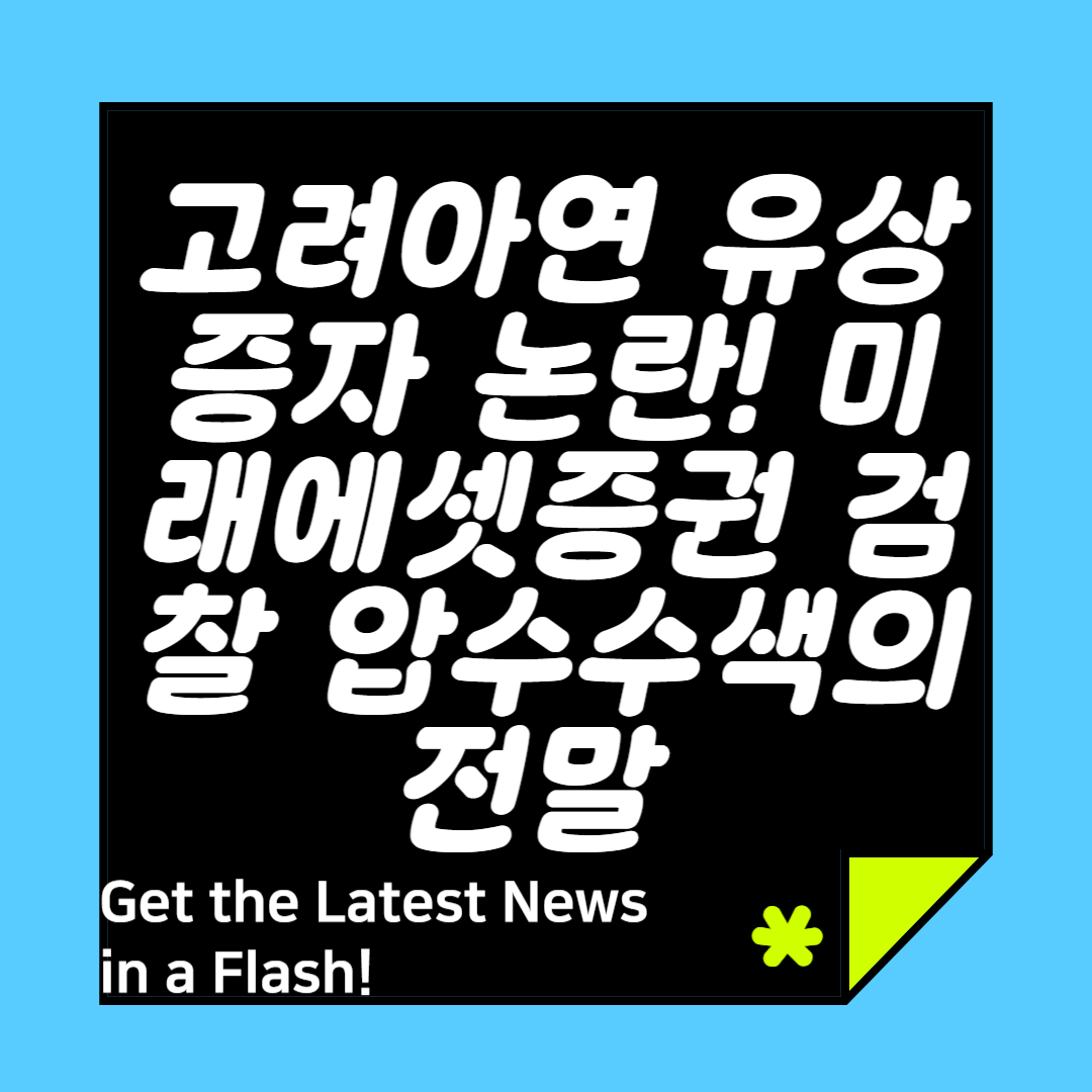 검찰, 고려아연 2.5조 유상증자 의혹으로 미래에셋증권 압수수색! 자본시장법 위반 조사 중, 주가 3%↓. 시장 신뢰와 투자 전망에 영향.