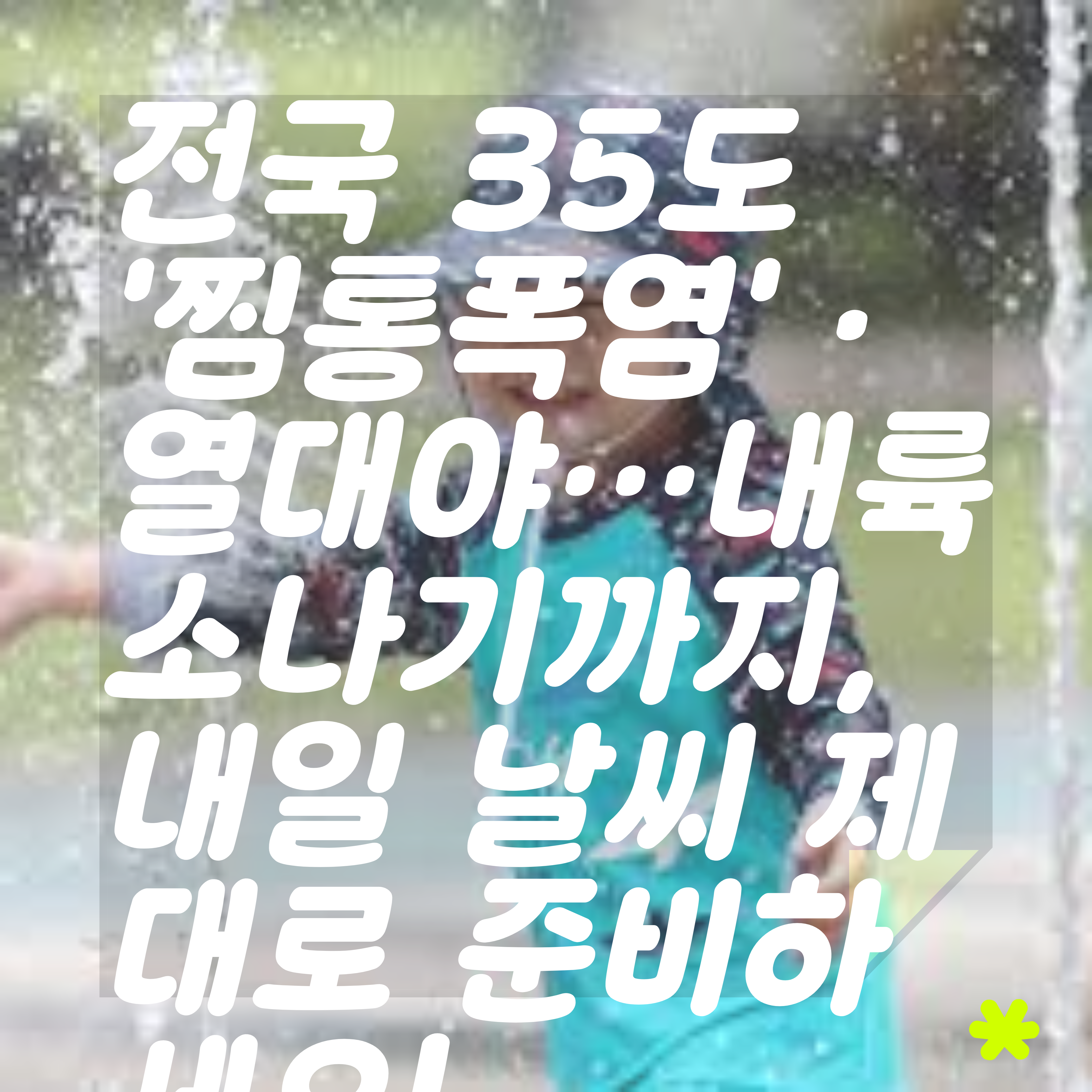 [내일날씨/여름건강] 전국 35도 ‘찜통폭염’·열대야…내륙 소나기까지, 내일 날씨 제대로 준비하세요!