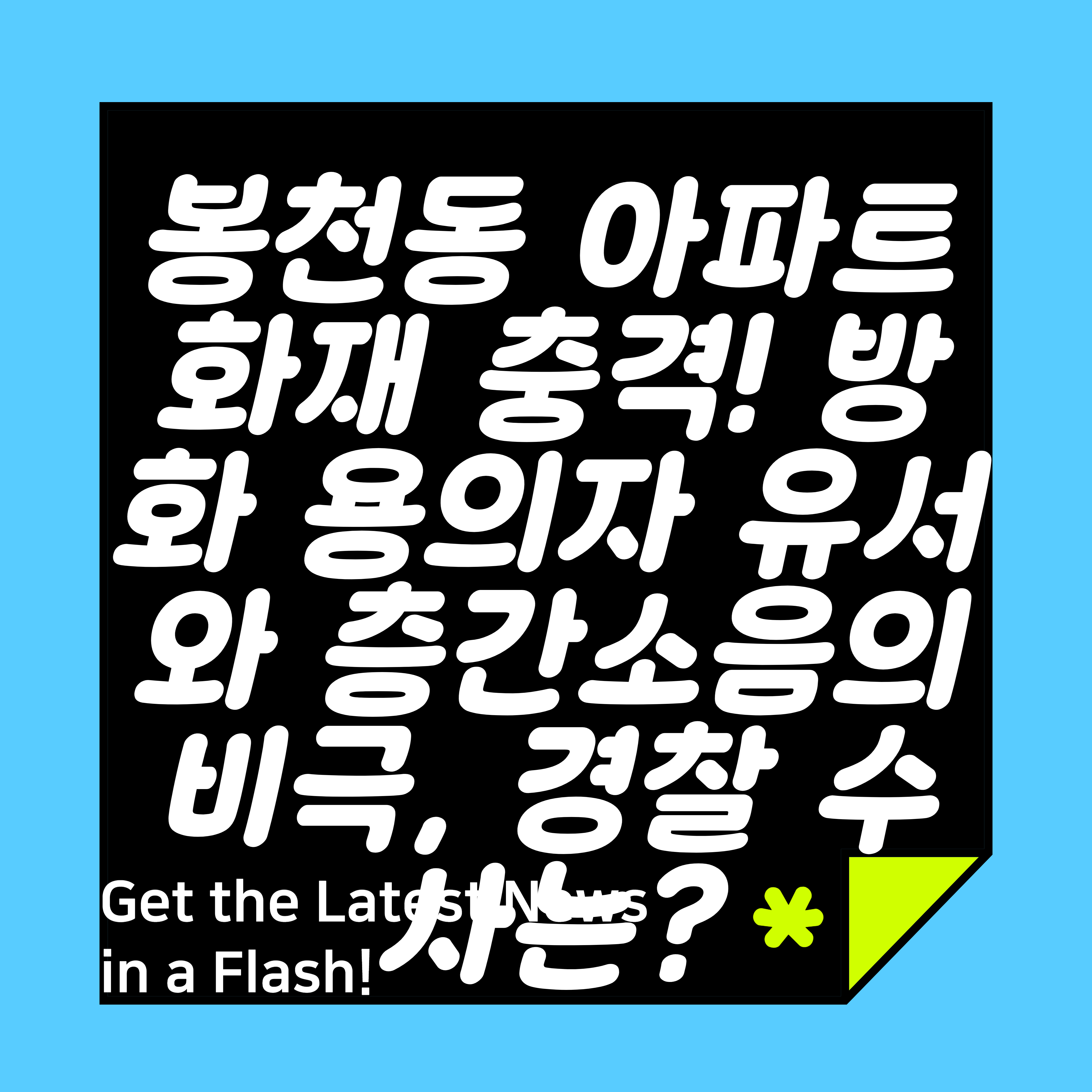 봉천동 아파트 화재 충격! 방화 용의자 유서와 층간소음의 비극, 경찰 수사는? 🔥#봉천동 #아파트화재 #방화 #층간소음 #경찰수사