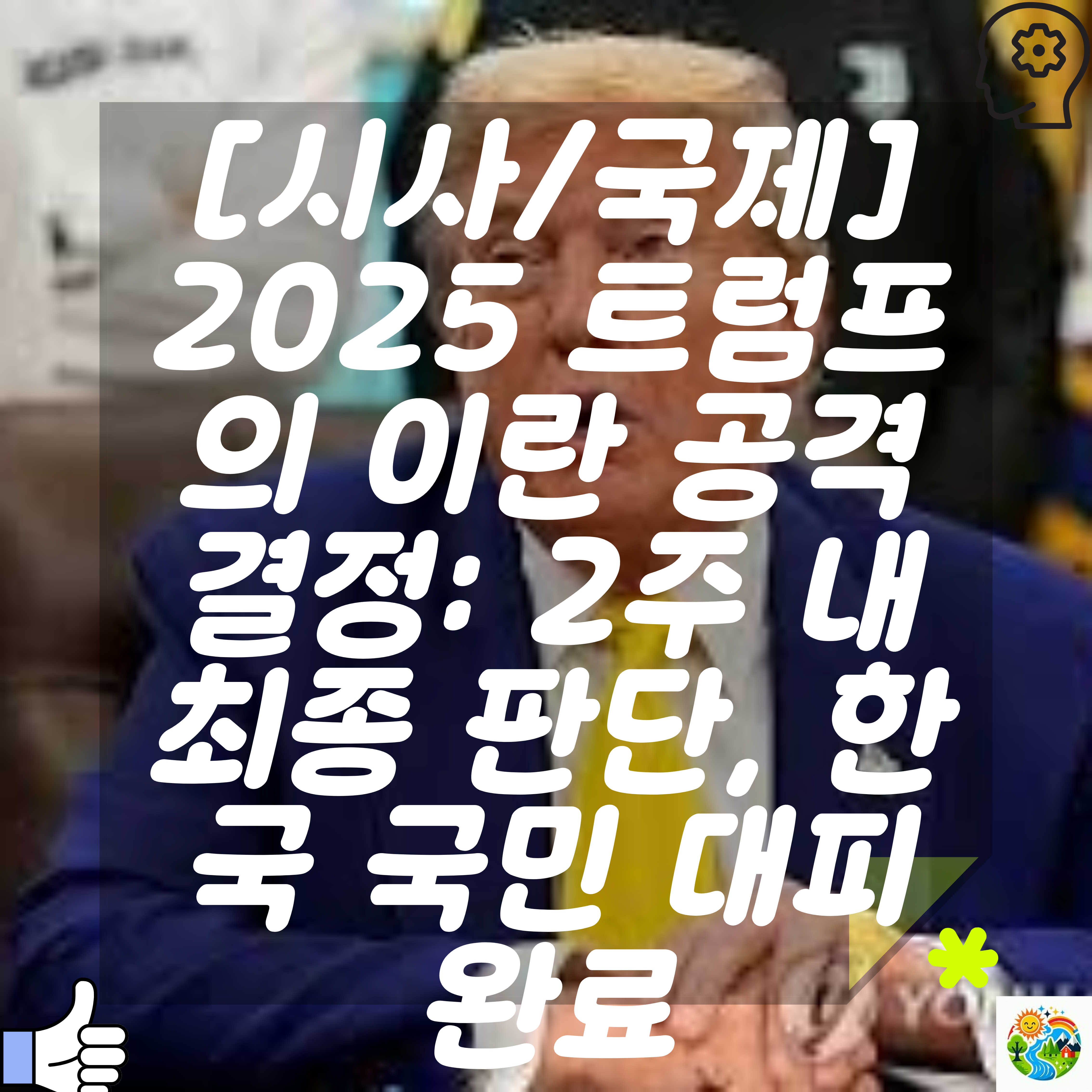 [시사/국제] 2025 트럼프의 이란 공격 결정: 2주 내 최종 판단, 한국 국민 대피 완료