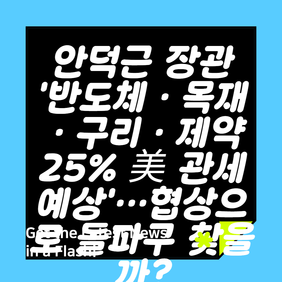 안덕근 장관이 반도체, 목재, 구리, 제약 등에 미국 25% 품목관세를 예상했어요. 협상으로 관세율을 낮추고, 한미 FTA 재개정은 피하려고 하죠!
