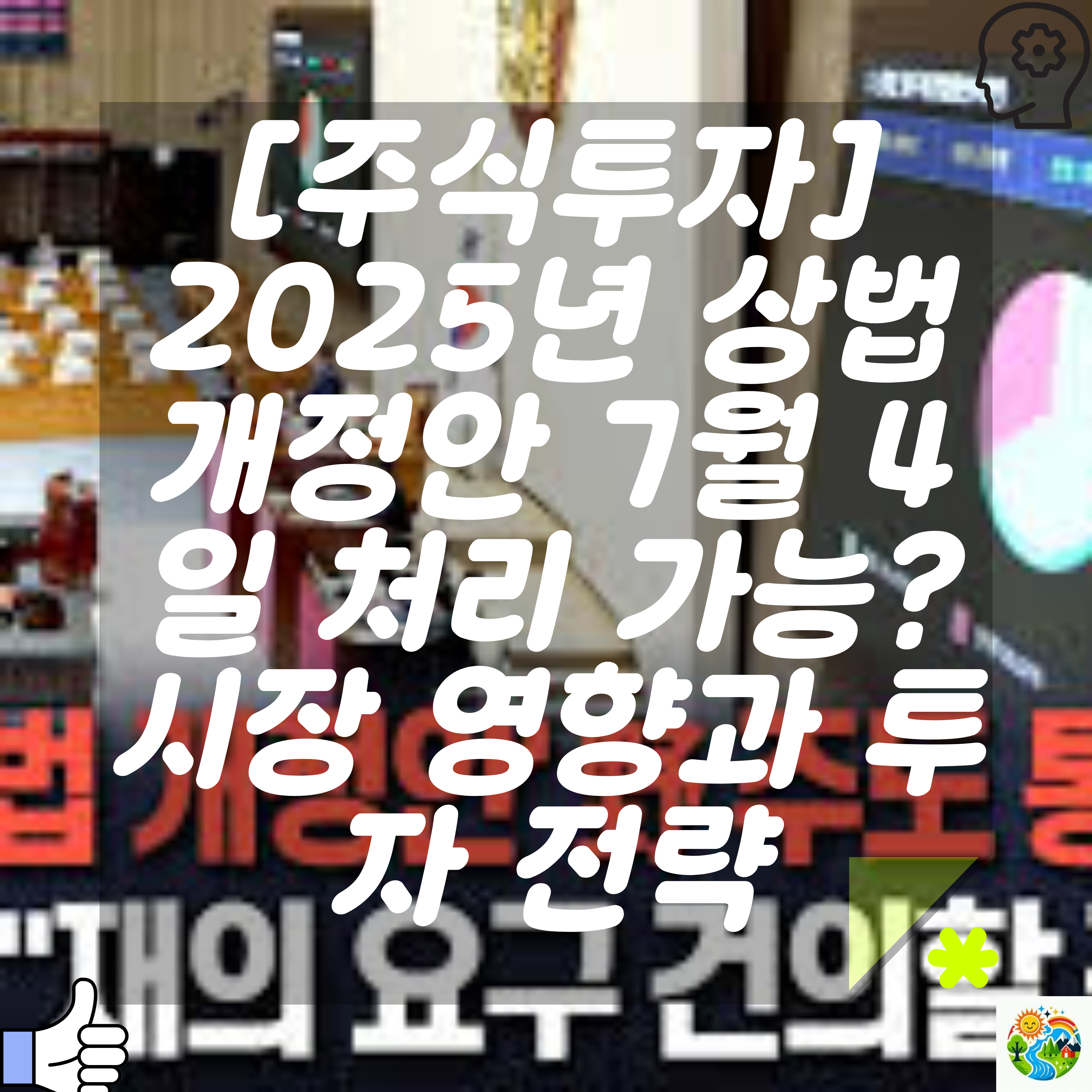 [주식투자] 2025년 상법 개정안 7월 4일 처리 가능? 시장 영향과 투자 전략 📜