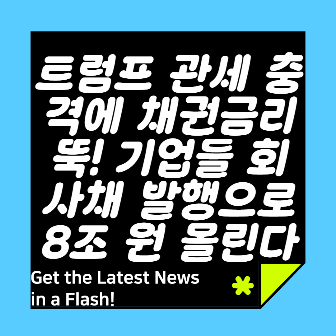 안녕하세요! 트럼프의 고율 관세로 채권금리가 급락하며 기업들이 회사채 발행에 나섰어요. 이달에만 8조 원 넘는 자금 조달이 예상되며, SK, CJ 등 대기업도 동참했답니다.