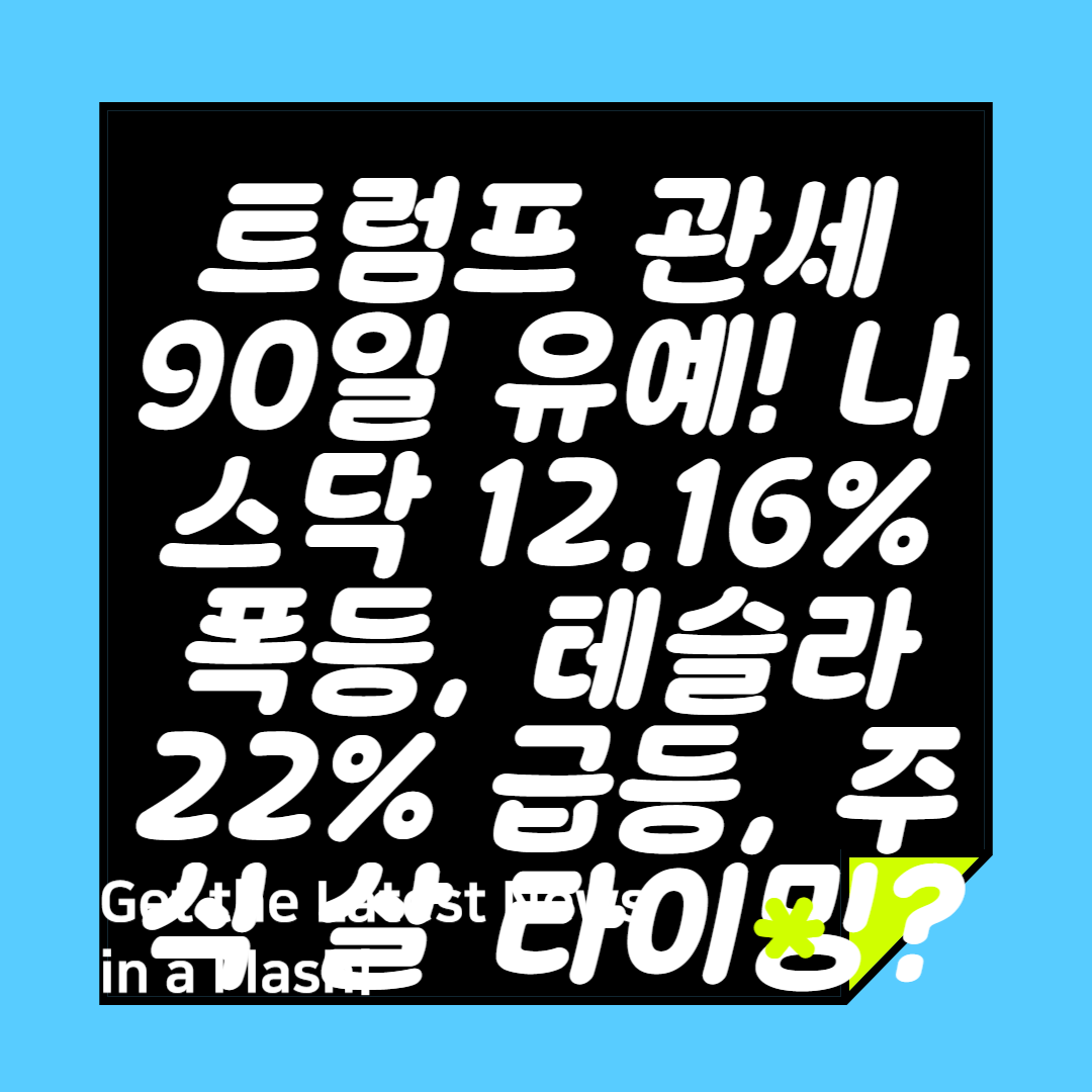 트럼프가 관세를 90일 유예하며 나스닥 12.16%, 다우 7.87%, S&P 9.52% 폭등! 테슬라 22.6% 급등했어요. 주식 투자 적기인지 알아볼까요?