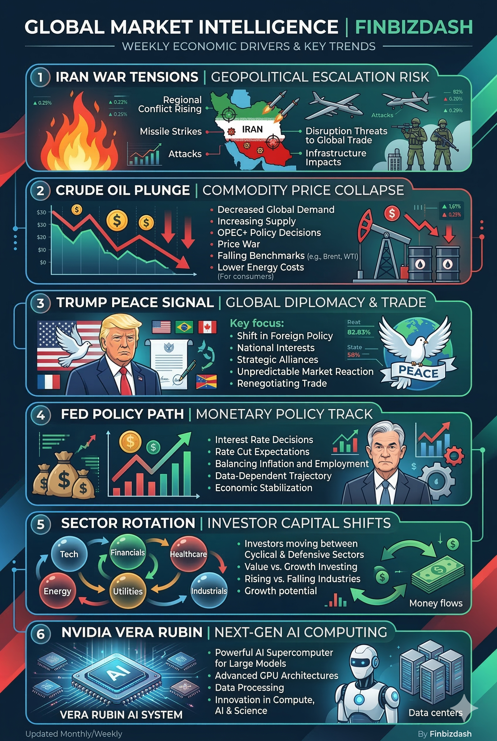 Today Keywords: Iran War, Crude Oil Plunge, Trump Peace Signal, Fed Policy, Sector Rotation, NVIDIA Vera Rubin