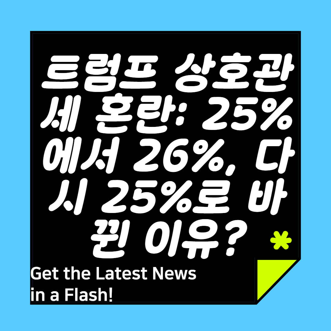 요약설명: 트럼프 상호관세, 한국 25%→26%→25%로 오락가락! 수정 이유 미공개 속, 코스피·뉴욕증시 흔들.
