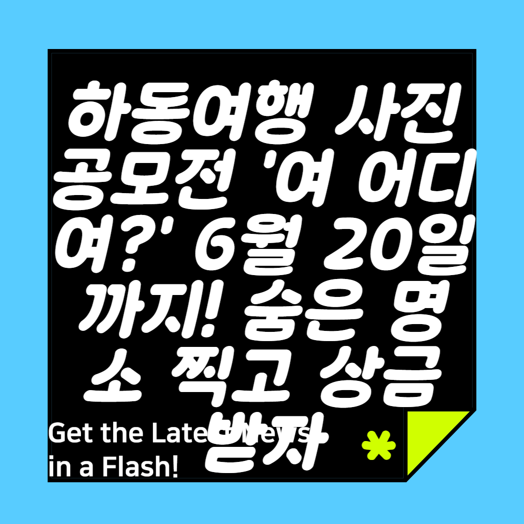하동군 '여 어디여?' 사진 공모전, 6월 20일까지! 스마트폰으로 하동의 자연, 축제, 먹거리 찍어 SNS 업로드하면 상금 최대 50만 원! 간단 참여로 하동 매력 발굴!
