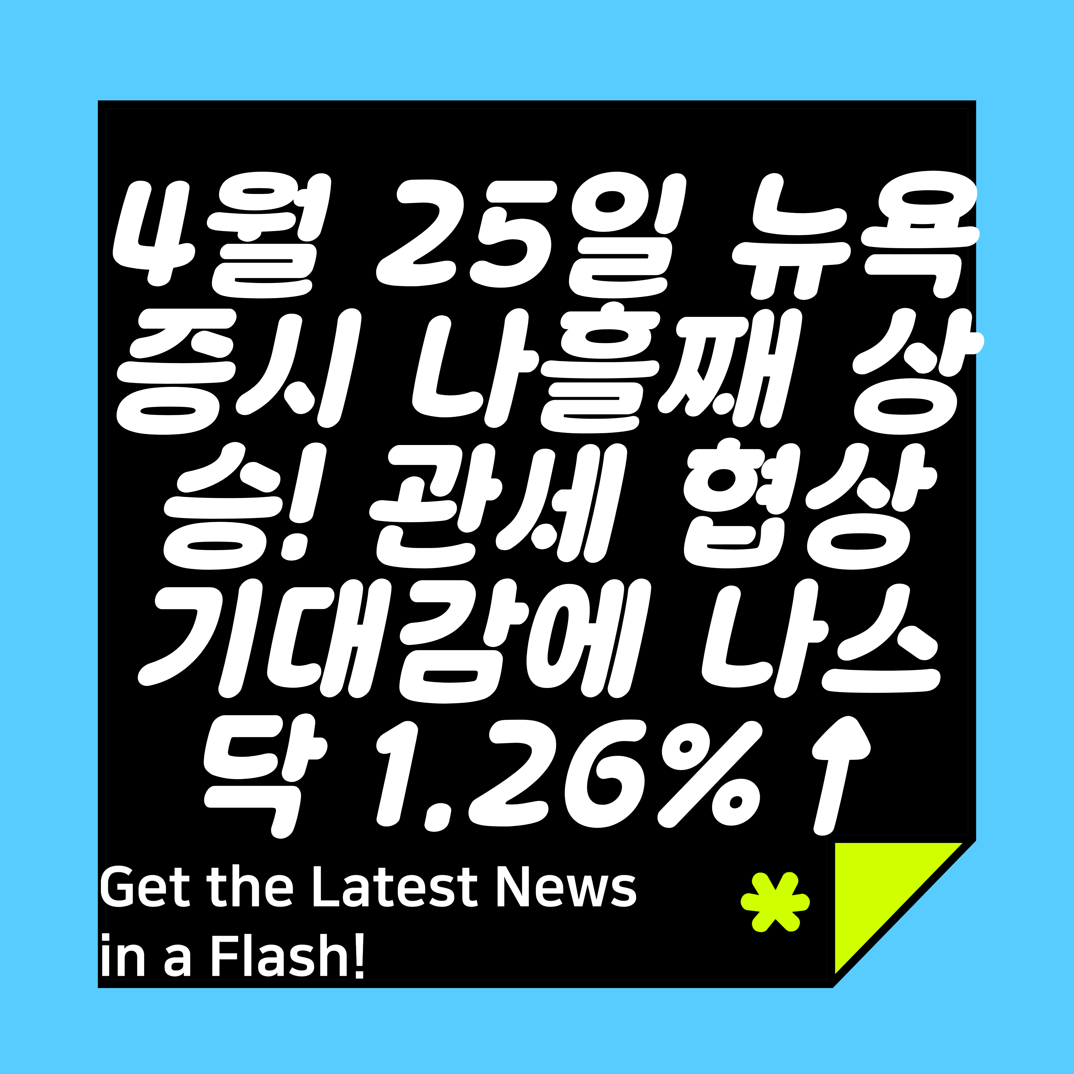 2025년 4월 25일 뉴욕증시 나흘째 상승! 관세 협상 기대감에 나스닥 1.26%↑ 📈💰