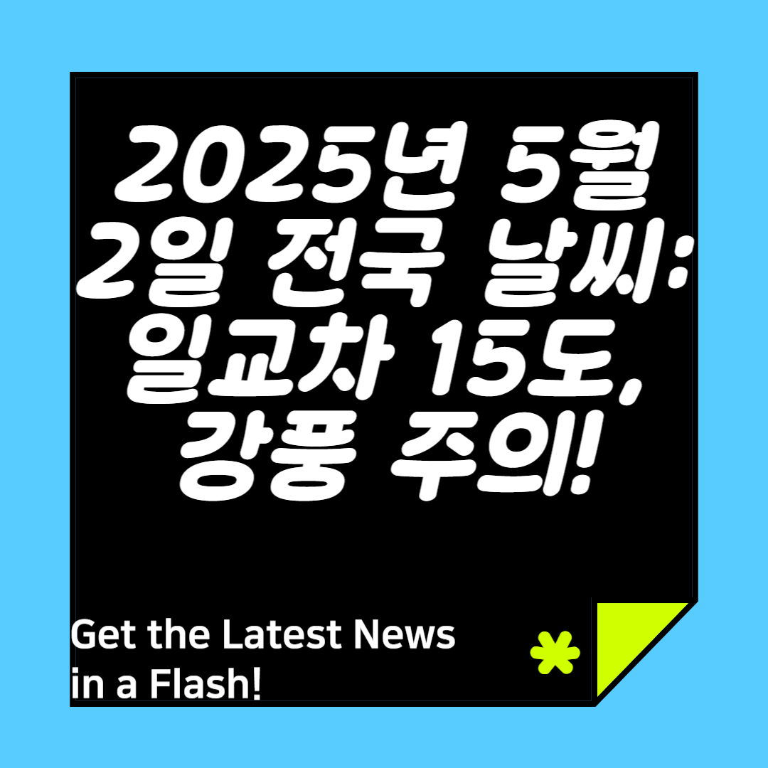 2025년 5월 2일 전국 날씨! 일교차 15도, 강풍 주의, 미세먼지 ‘좋음’. 건강과 안전 챙기세요!