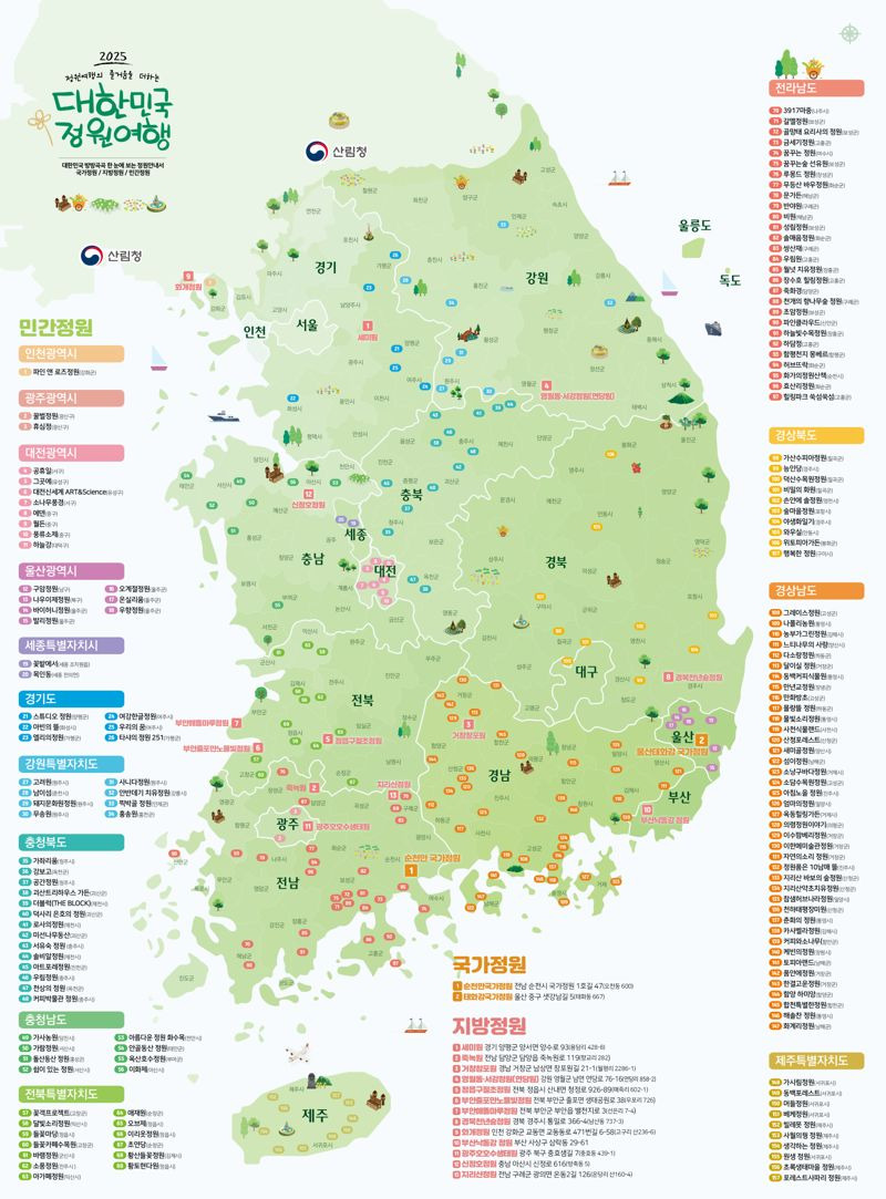 2025년 봄, 산림청의 '대한민국 정원여행지도'로 전국 172개 정원을 탐방하세요! 국가·지방·민간정원의 사진, 위치, 운영시간이 담긴 가이드로 힐링 여행을 계획해 보세요!